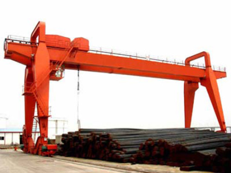双主梁门式起重机一般指双梁桥式起重机,一般由机械、电气和金属结构三大部分组成。其外形像一个两端支承在平行的两条架空轨道上平移运行的单跨平板桥。双主梁门式起重机在室内外工矿企业、钢铁化工、铁路交通、港口码头以及物流周转等部门和场所均得到广泛的运用。