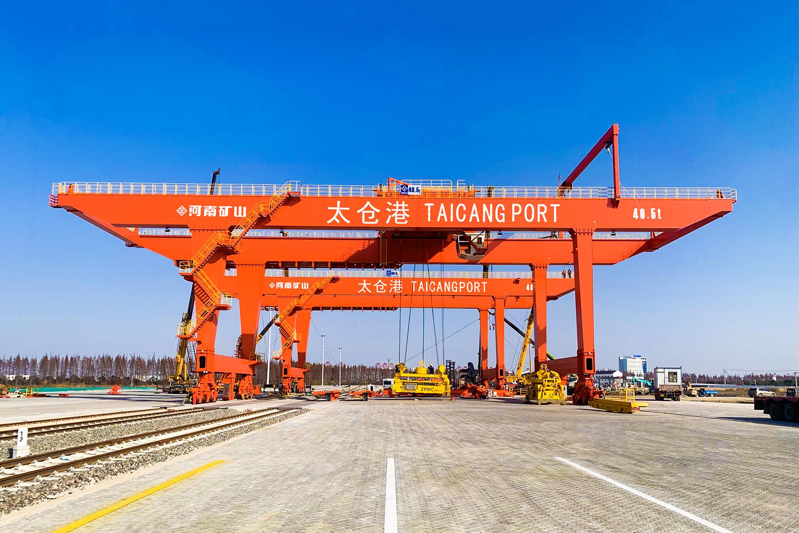 太仓港是江苏港口型物流枢纽的主要承载区,拥有长三角广阔的市场前景。河南矿山为太仓港量身定制的轨道式集装箱门式起重机,在工期紧、任务重的情况下,按时保质顺利交付使用。该集装箱门机的成功运行,将以优质的产品服务和出色的集装箱堆场装卸作业,提升港口的集装货运能力,为港口的整体作业提供技术和装备支撑。